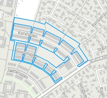 Note 1 Som en del af udstykningen var der fra starten planlagt et supermarked og 2-3 mindre forretninger. I tegningerne er der – udover købmand – både vist en frisør, en kiosk og en bager. Det blev kun til en kiosk og en bager. Senere blev kiosken nedlagt. Købmand Olsen åbnede “Nordland Super”. Senere solgte han til købmand Jørgen Schødt, der så i 2018 solgte både Nordland Super og bageriet til Dansk Supermarked. Netto ønskede river den gamle bygning ned og at lave den størst mulige butik, lokalplanen tillod: 1250 kvm. Derfor solgte kommunen i 2018 – tinglyst feb. 2019 – en del af slippen mellem vuggestuen og supermarkedet. Med andre ord: kommunen solgte jord, der ifølge deklarationen tilhørte fællesarealerne, men som var tilskødet kommunen. Da byggeriet begyndte opdagede grundejerforeningen salget og indsendte en klage, som kommunen afviste, fordi matriklen 3eæ var tilskødet kommunen og arealet langs med slippen ikke var udlagt som fællessti, men som privat sti.